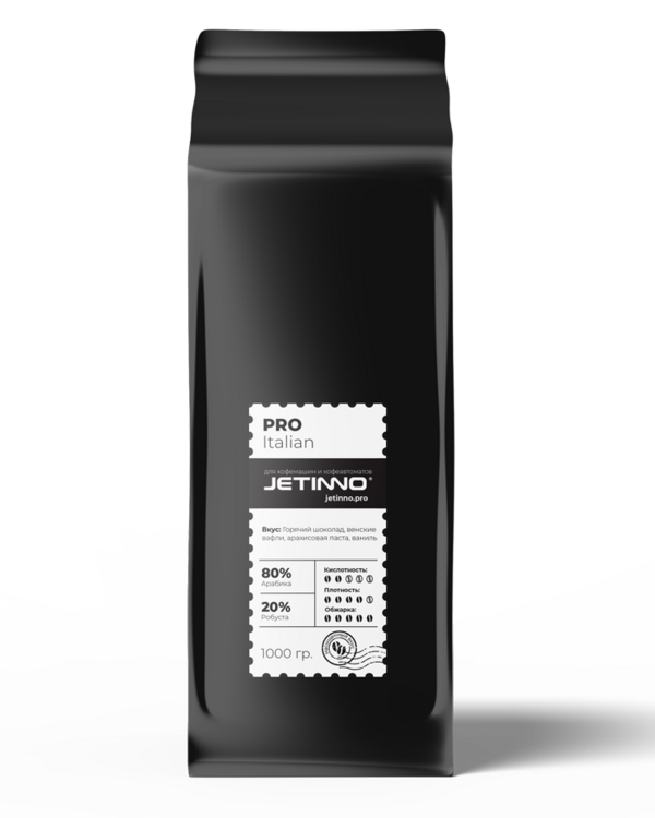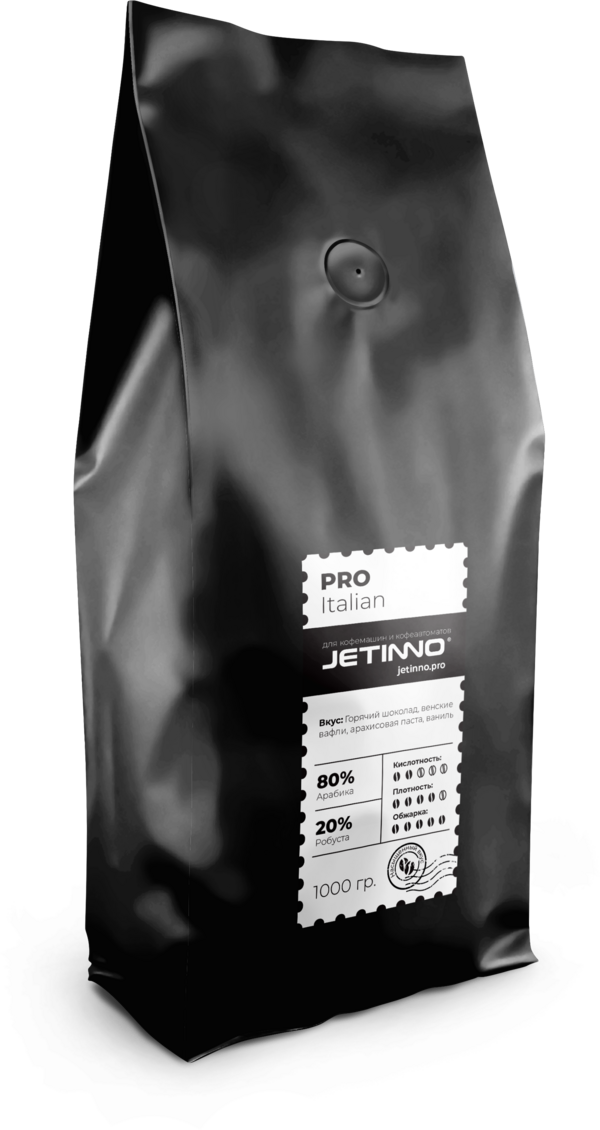 Кофе в зернах. 80% Арабика, средняя обжарка, регион: Бразилия, Сантос. 20% Робуста, регион: Вьетнам