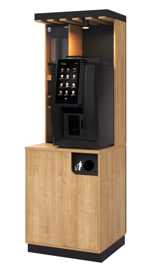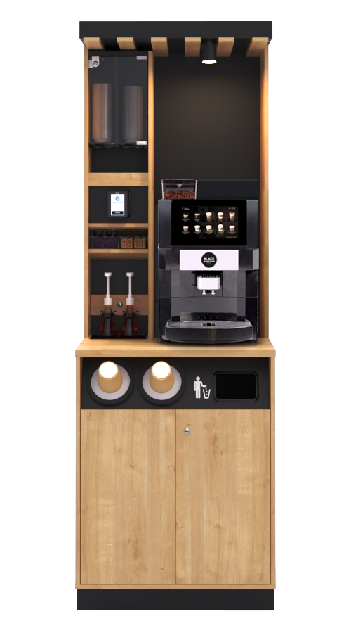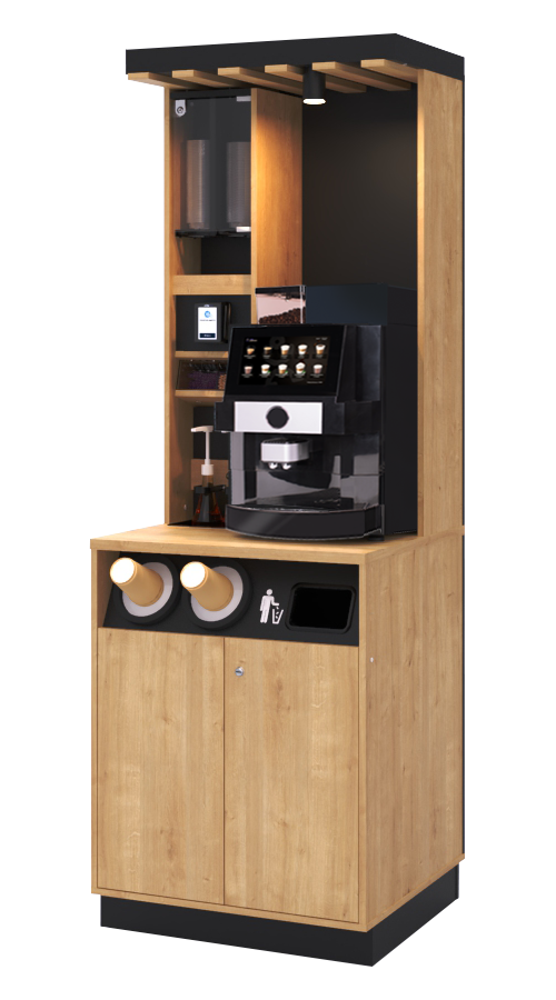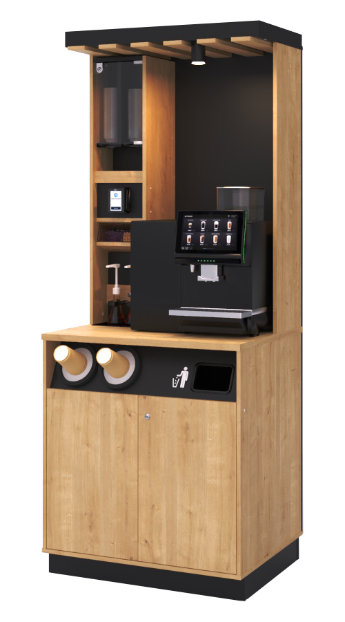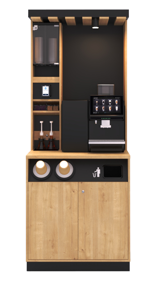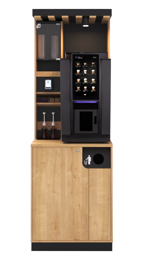 Автоматический кофекорнер с кофемашиной Jetinno JL22, терминалом банковских карт, органайзером сиропов, двумя диспенсерами стаканов